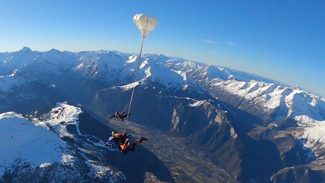 DEUX Baptèmes de Saut en parachute tandem à 3000m sur le même vol, atterrissage L'Alpe d'Huez | 1090 € (soit le saut à 545 €) |
